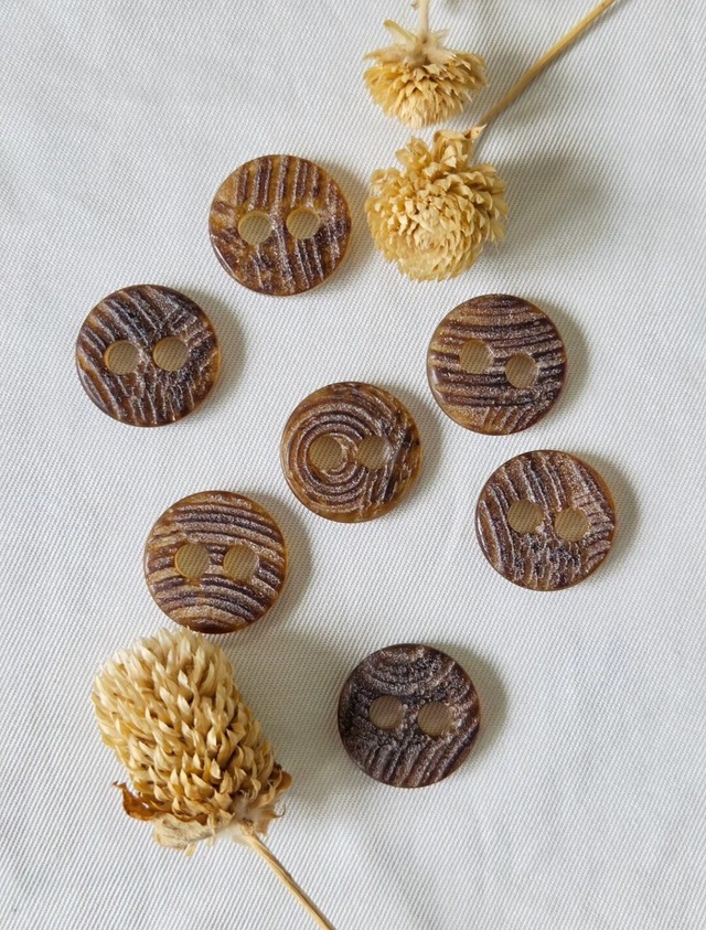 柄入り本ナットボタン【約25mm】 イマより少し前なのにイマよりぬくもりのあるボタン。 柄入り本ナットボタン【約25mm】は、自然の素材である本ナットを使用し、プリントなのか?焼きによるものなのか?独自のデザインが施されています。倉庫からの掘り出し物で、特別な風合いが魅力です。他では見ないこのボタンはあなたの作品に個性と存在感を加え、独自のスタイルを演出します。カジュアルな洋服やバッグ、ハンドメイドアクセサリーにぜひ取り入れて、あなたのクリエイティブな表現を広げてください! 【商品詳細】 柄入り本ナットボタン 販売単位:1個 サイズ: 約25mm 厚み: 約4.5mm 重さ:約2.0g 素材:本ナット MADE IN JAPAN オススメ:カジュアル洋服、バッグ、ハンドメイドアクセサリー (ユニークなデザイン 本ナット ハンドメイド アクセサリー 手芸) ※ヴィンテージ、アンティークのため多少のキズ、色ムラ、変色、汚れなどがあります。 経年によるものですので、御理解いただけますようお願いいたします。 ※商品の色味につきまして、お客様のお使いのPCのモニター環境により実際のカラーと画像の色味が違って見える場合がございます。予めご了承の上、ご注文ください。 ※屋外・屋内での撮影画像は光の加減で、実際の商品より明るく見える場合がございます。 ※ヴィンテージ、アンティークのため多少のキズ、色ムラ、変色、汚れなどがあります。経年によるものですので、御理解いただけますようお願いいたします。 ※商品の色味につきまして、お客様のお使いのPCのモニター環境により実際のカラーと画像の色味が違って見える場合がございます。予めご了承の上、ご注文ください。 ※屋外・屋内での撮影画像は光の加減で、実際の商品より明るく見える場合がございます。