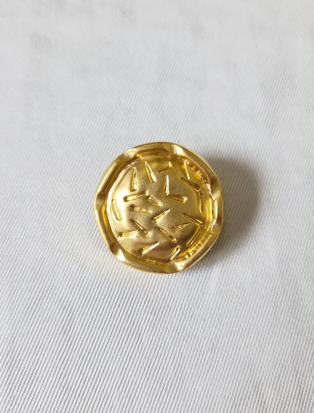 ブラッシュボタン【約25mm】は、マットゴールドの地に散りばめたような柄が施された、どこか華やかでありながら落ち着いたデザインが特徴です。その軽やかな印象が、あなたの作品にエレガントなアクセントを加え、洗練されたスタイルを演出します。カジュアルな洋服やバッグ、ハンドメイドアクセサリーにぜひ取り入れて、特別な雰囲気を楽しんでください!