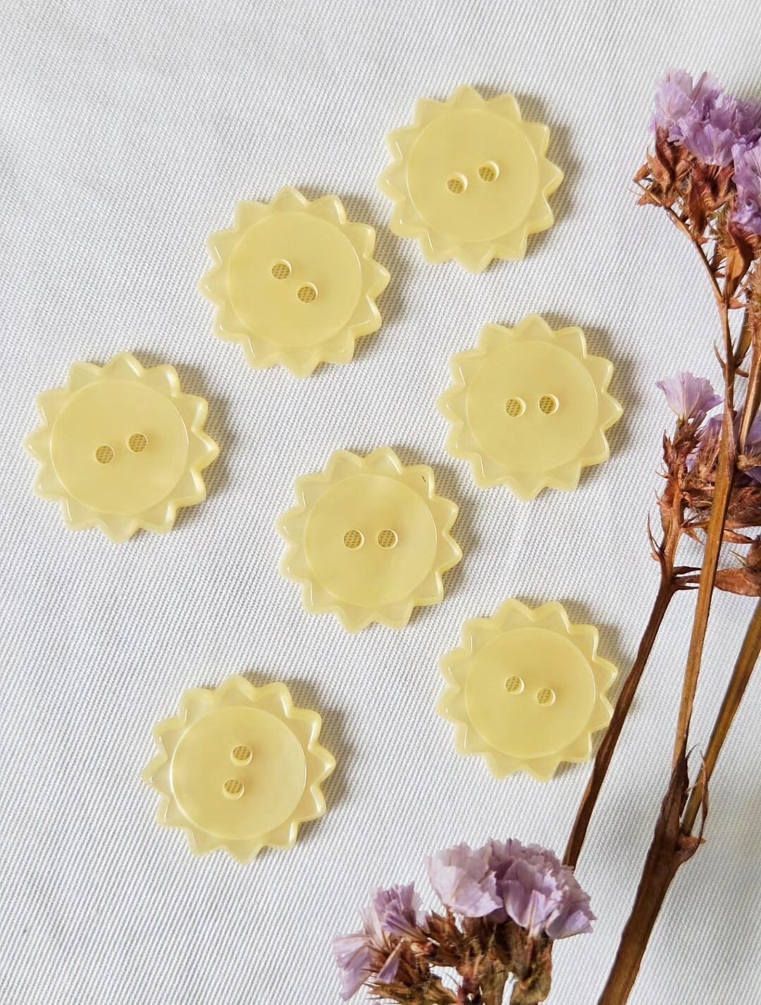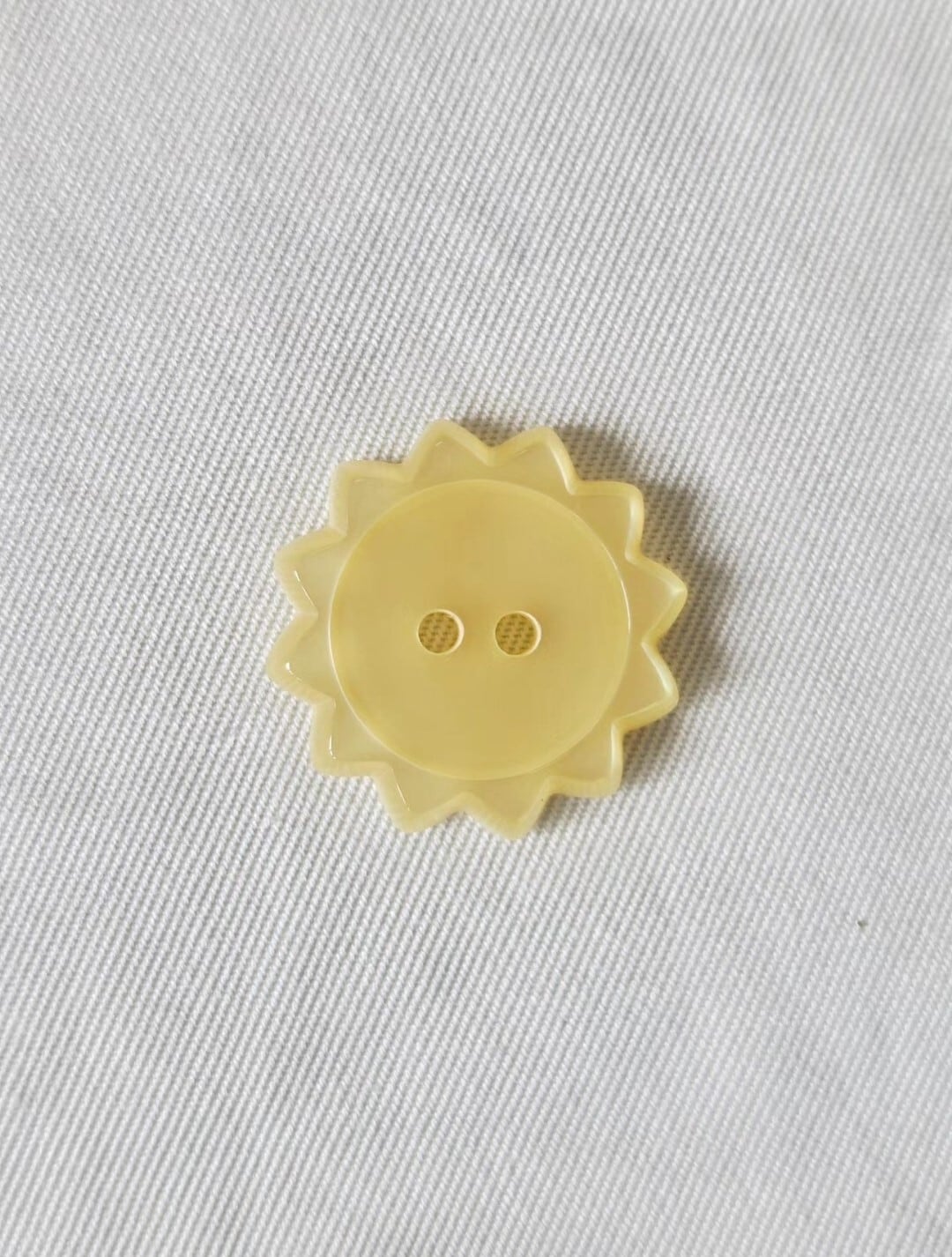 パール感のある素材で作られた、かわいい雰囲気のある太陽の形がふんわりと柔らかな印象を与えます。温かみのあるデザインはお子様の洋服やバッグ、ハンドメイドアクセサリーにぜひご活用いただきたいアイテムです。明るい太陽のモチーフが作品に陽射しのような明るさを与え、あなたのクリエイティブな表現を広げてくれます!