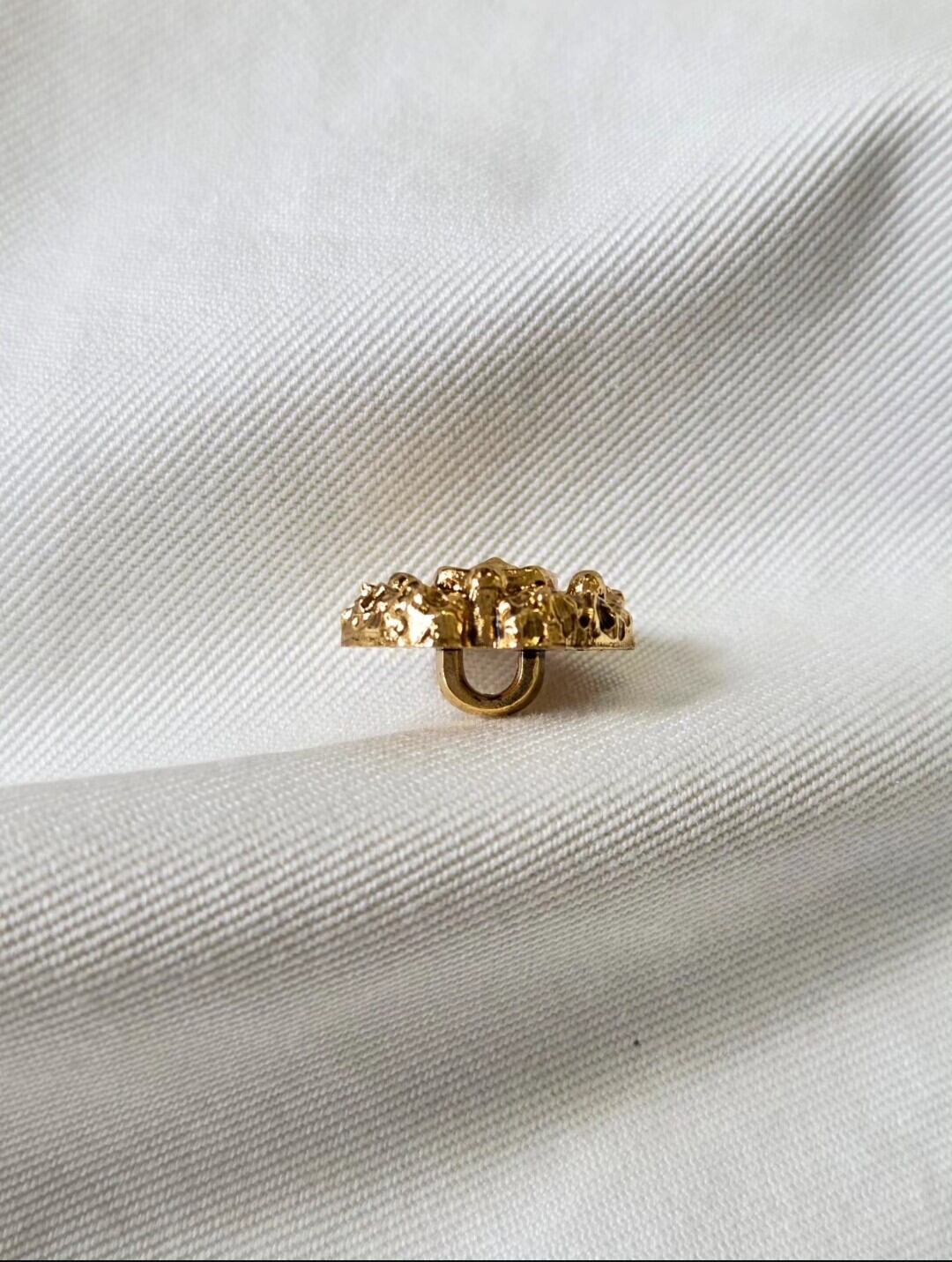 エックニックボタン【約15mm】は、個性的なエスニック柄と落ち着いたくすみゴールドドのコンビネーションが特徴の魅力的なボタンです。その独自のデザインは、あなたの作品に特別な存在感を与え、印象深いアクセントとして活躍します。バッグやアウター、ハンドメイドアクセサリーにぜひ取り入れて、オリジナリティあふれるスタイルを楽しんでください!