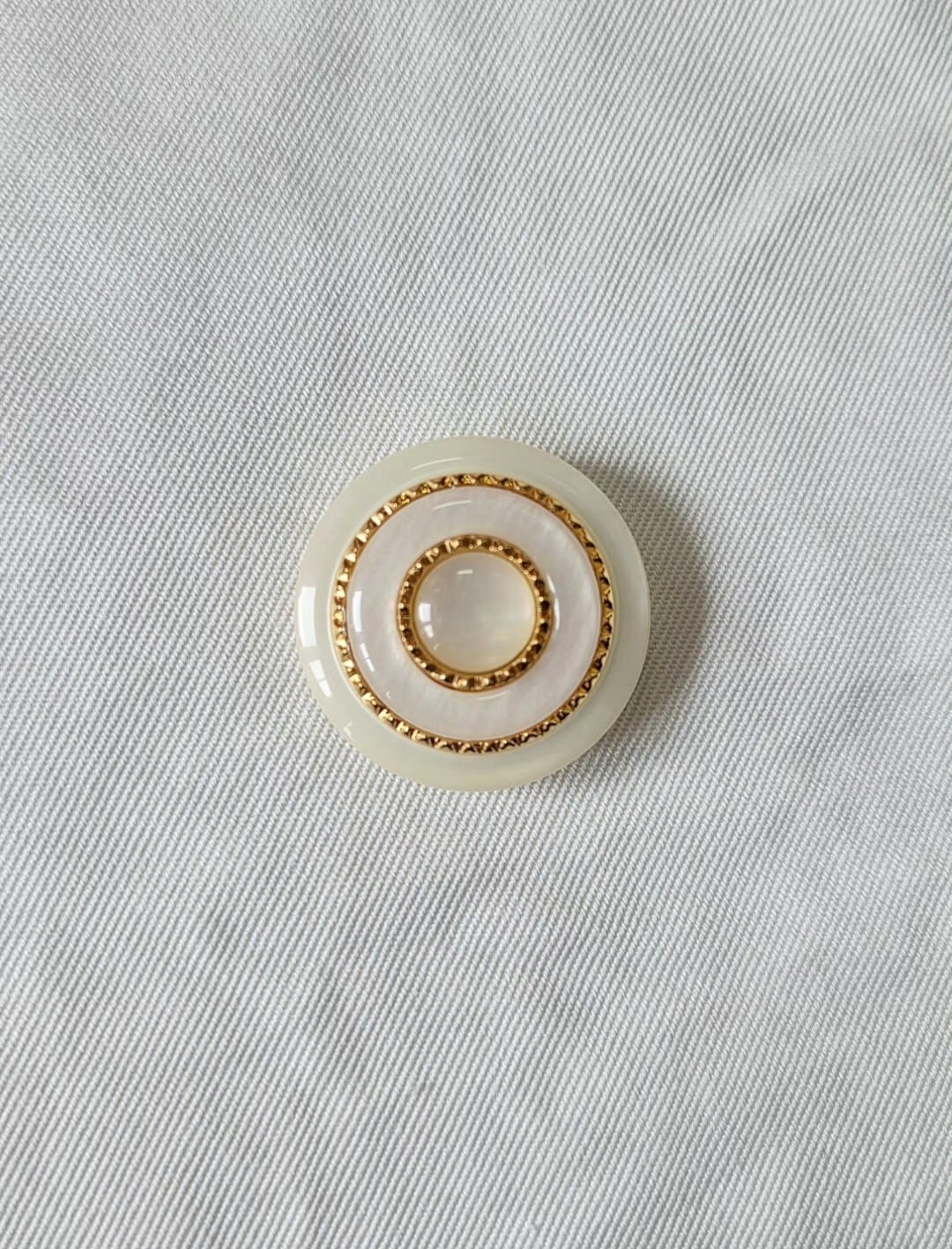pufOボタン【約25mm】は、パールが入った素材にカットゴールドリングがあしらわれており、煌めく輝きを放つデザインが特徴です。このボタンはボリューミーで、あなたの作品に豪華さと個性をプラスします。ぜひ、ハンドメイドアクセサリーやファッションアイテムに取り入れて、その魅力を楽しんでください!