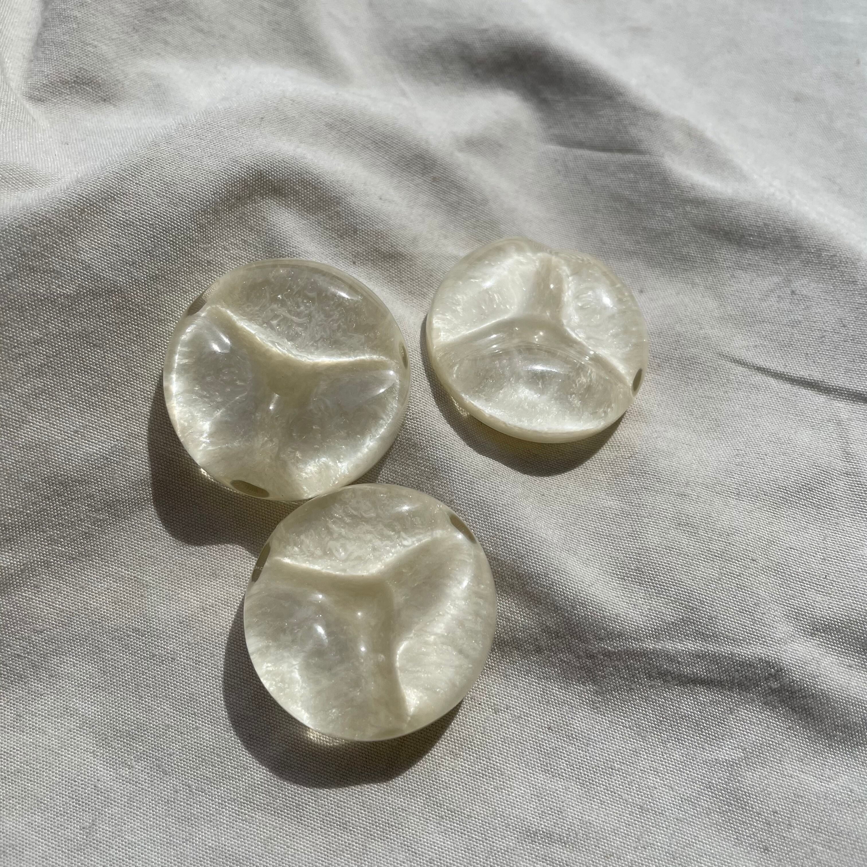 マーブルクリームをプックリ樹脂でコーティングした起伏のあるボタン、角度や光の当たりかたで様々な表情を見せてくれます。