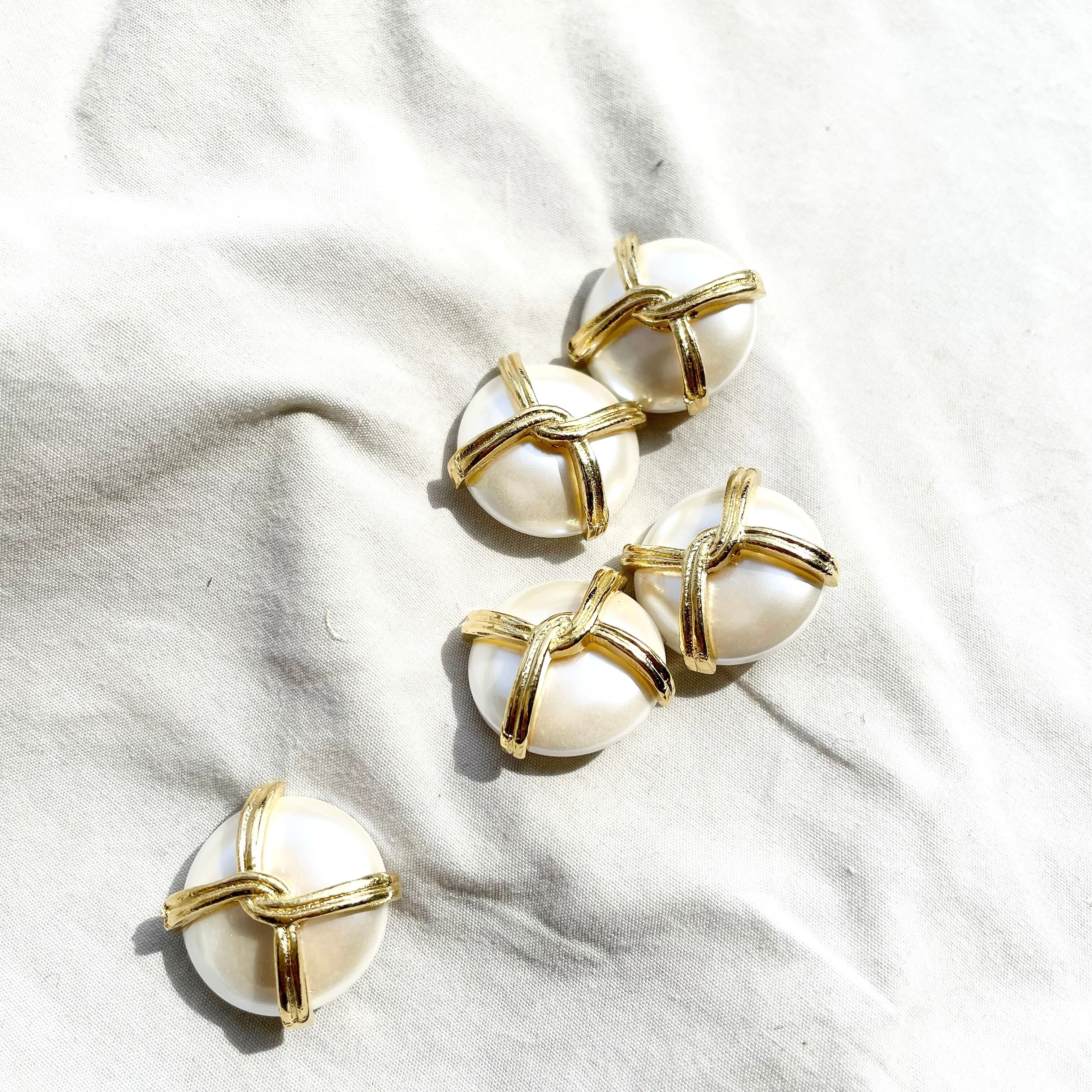 パールつつむようにクロスに配置されたゴールドが上品なしあがりのボタンです。