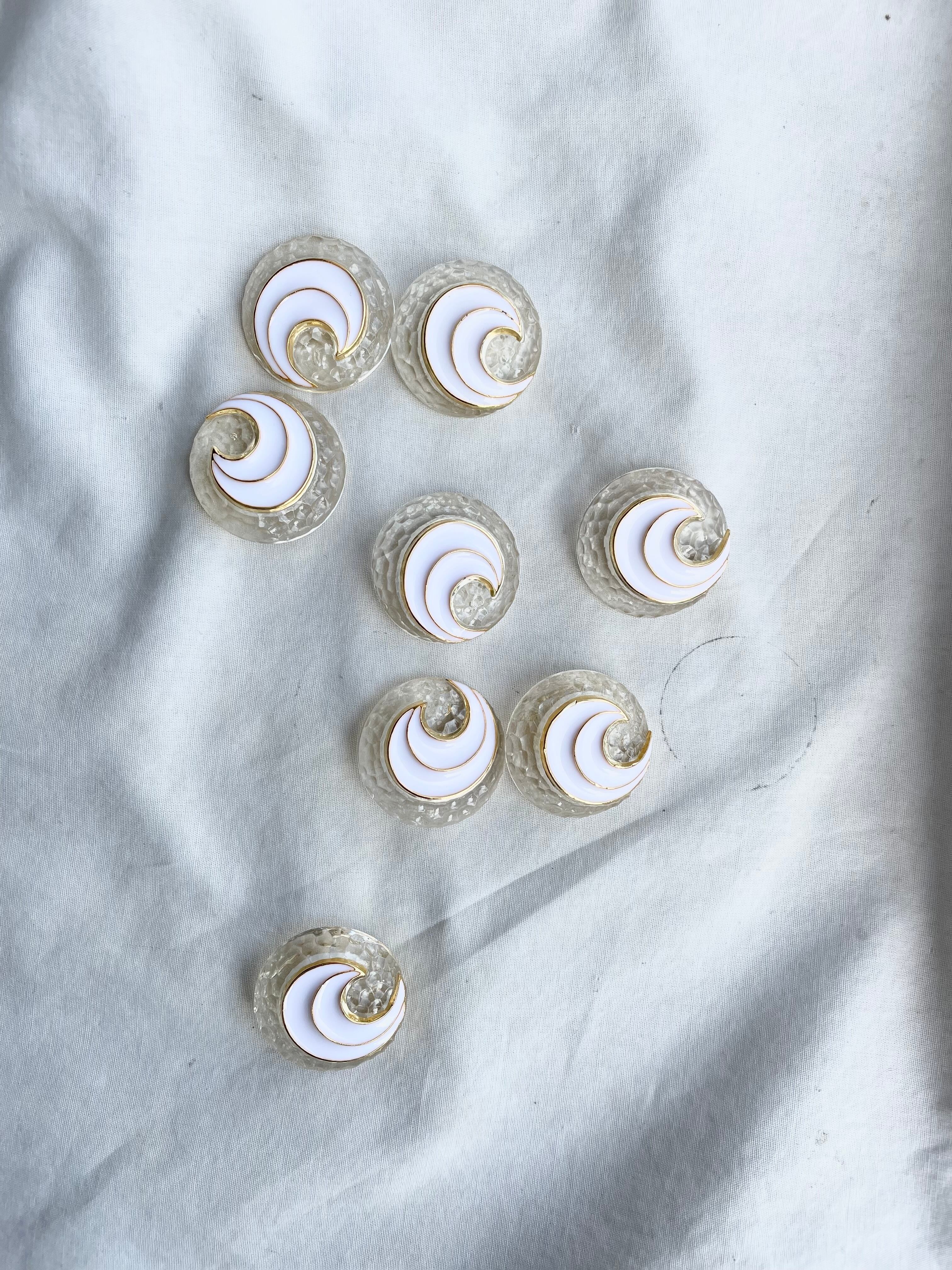 クリアベースにホワイトのウズマキを配置した樹脂ボタンです。