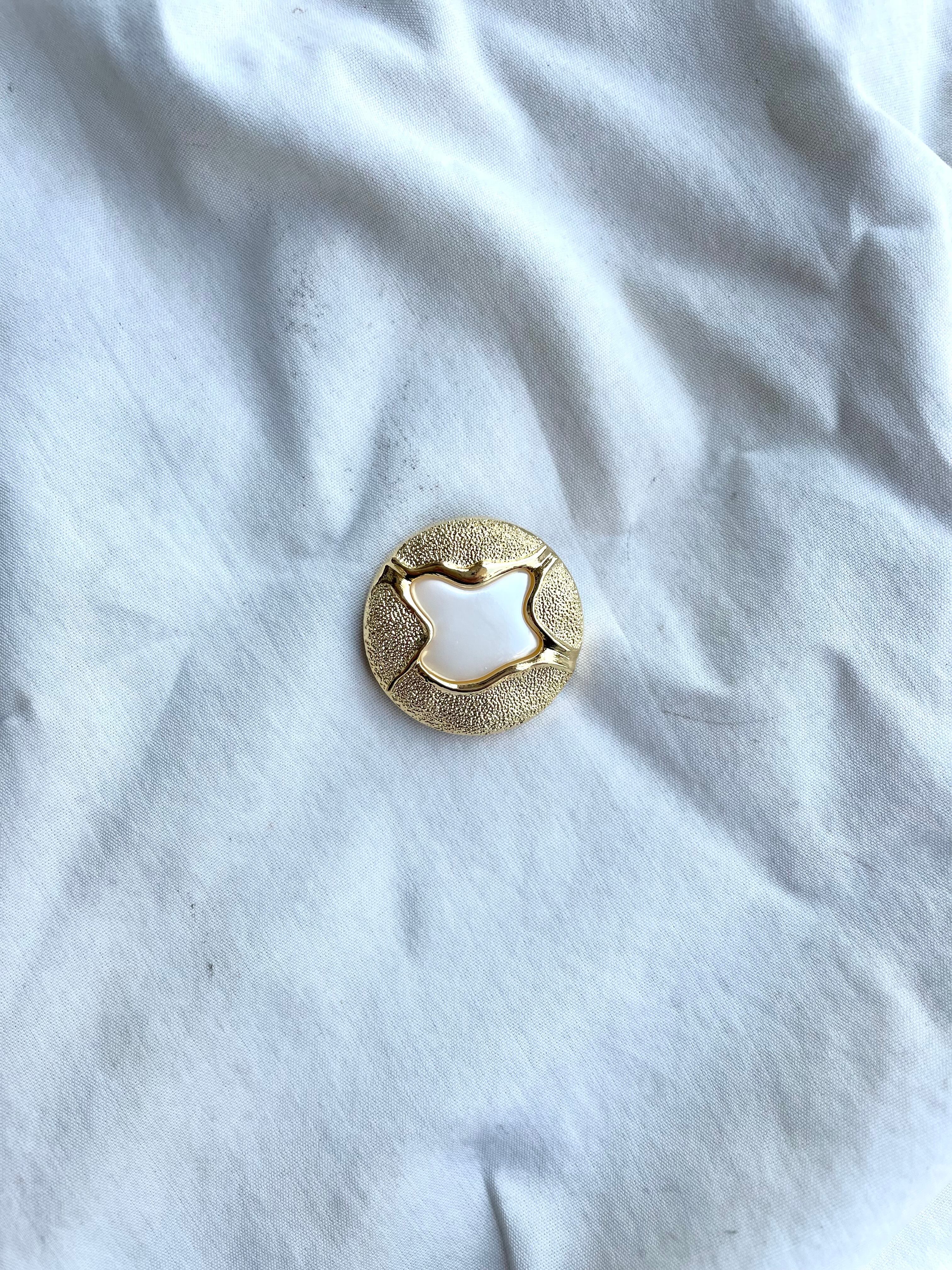 ゴールドベースに大胆な乳白の配置が魅力の樹脂ボタンです。