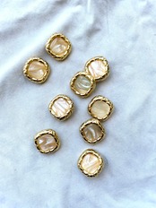 レトロなスクエアにパールがチャーミングな樹脂ボタンです。