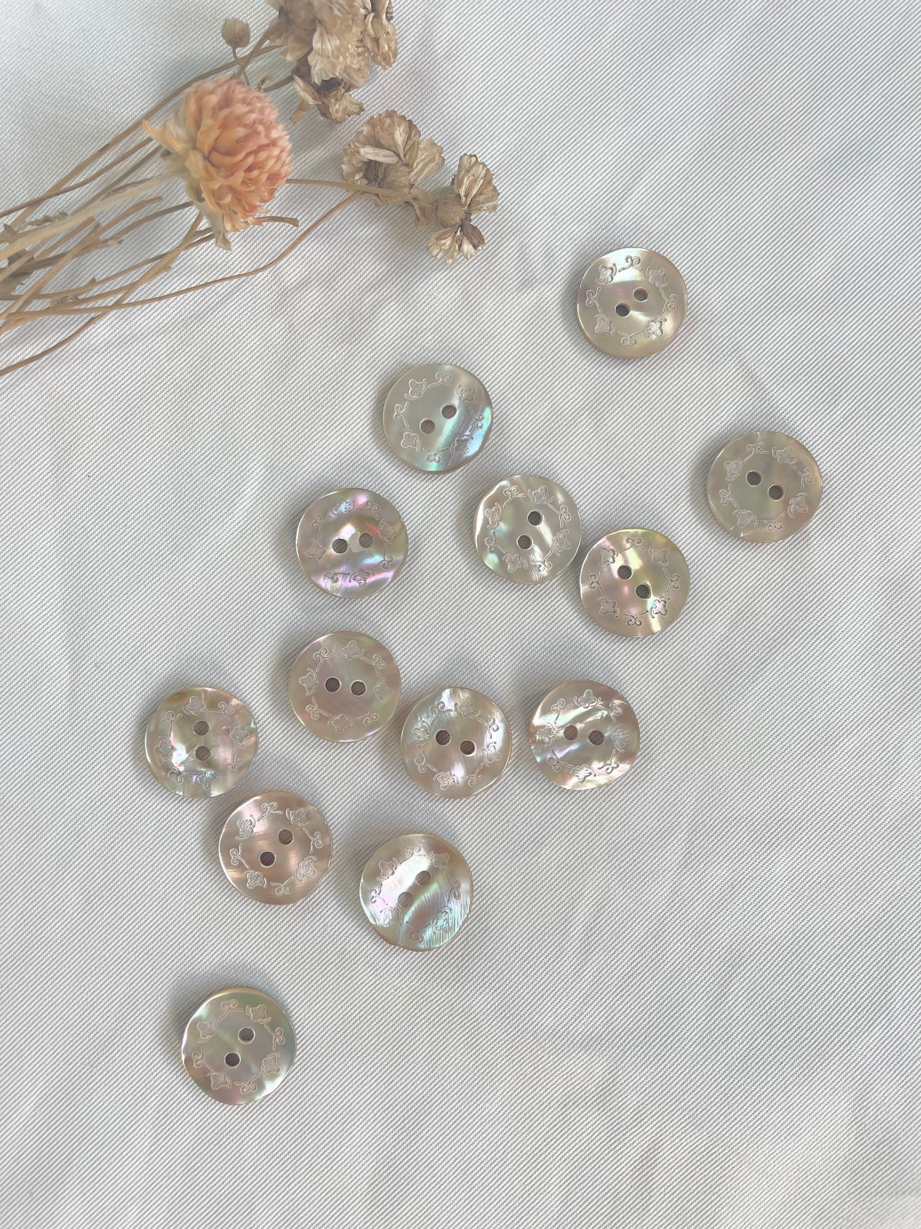 天然シェルのオーロラ色に繊細な掘り加工がステキな貝ボタンです✨