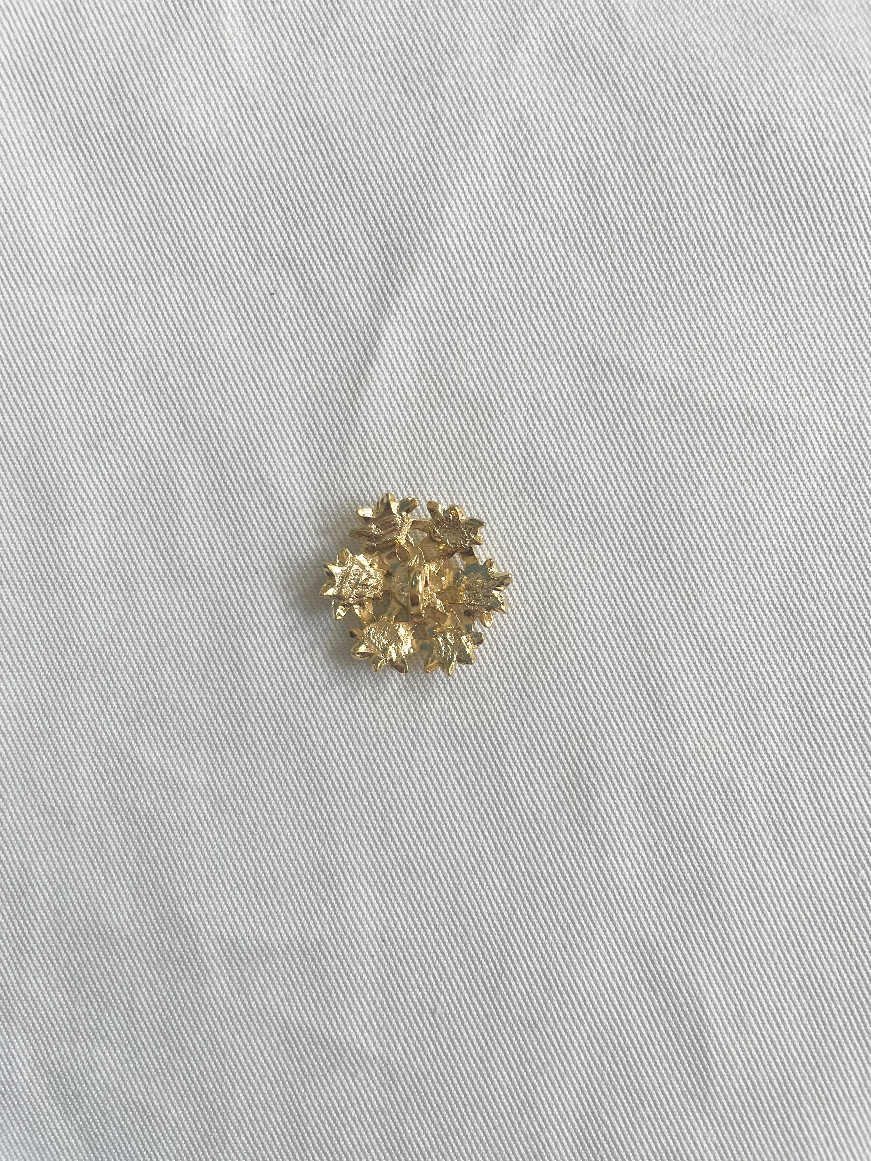 7つのお花が咲いたゴールドとホワイトのコントラストが落ちついた華やかさを感じさせる合金のボタンです。