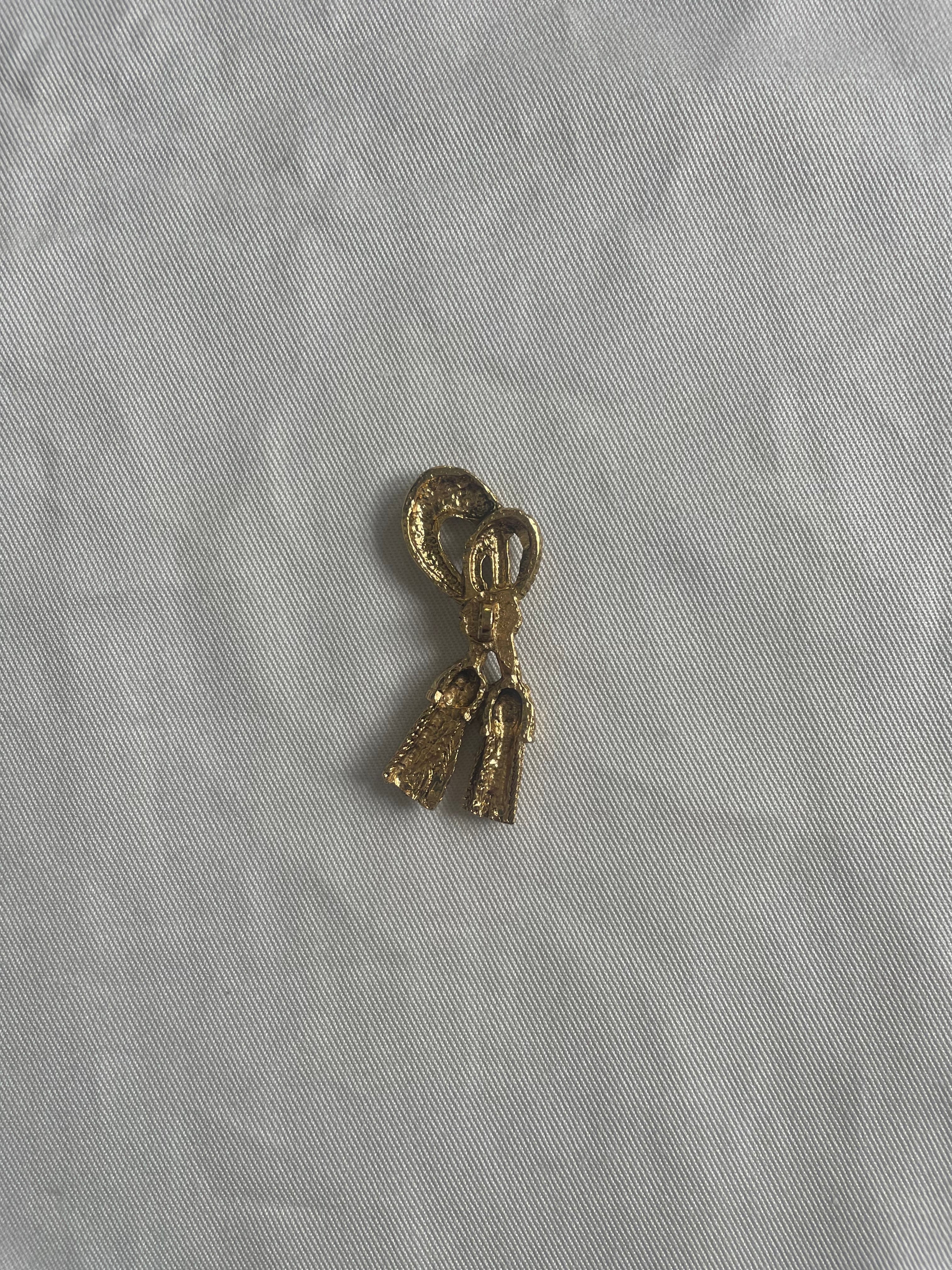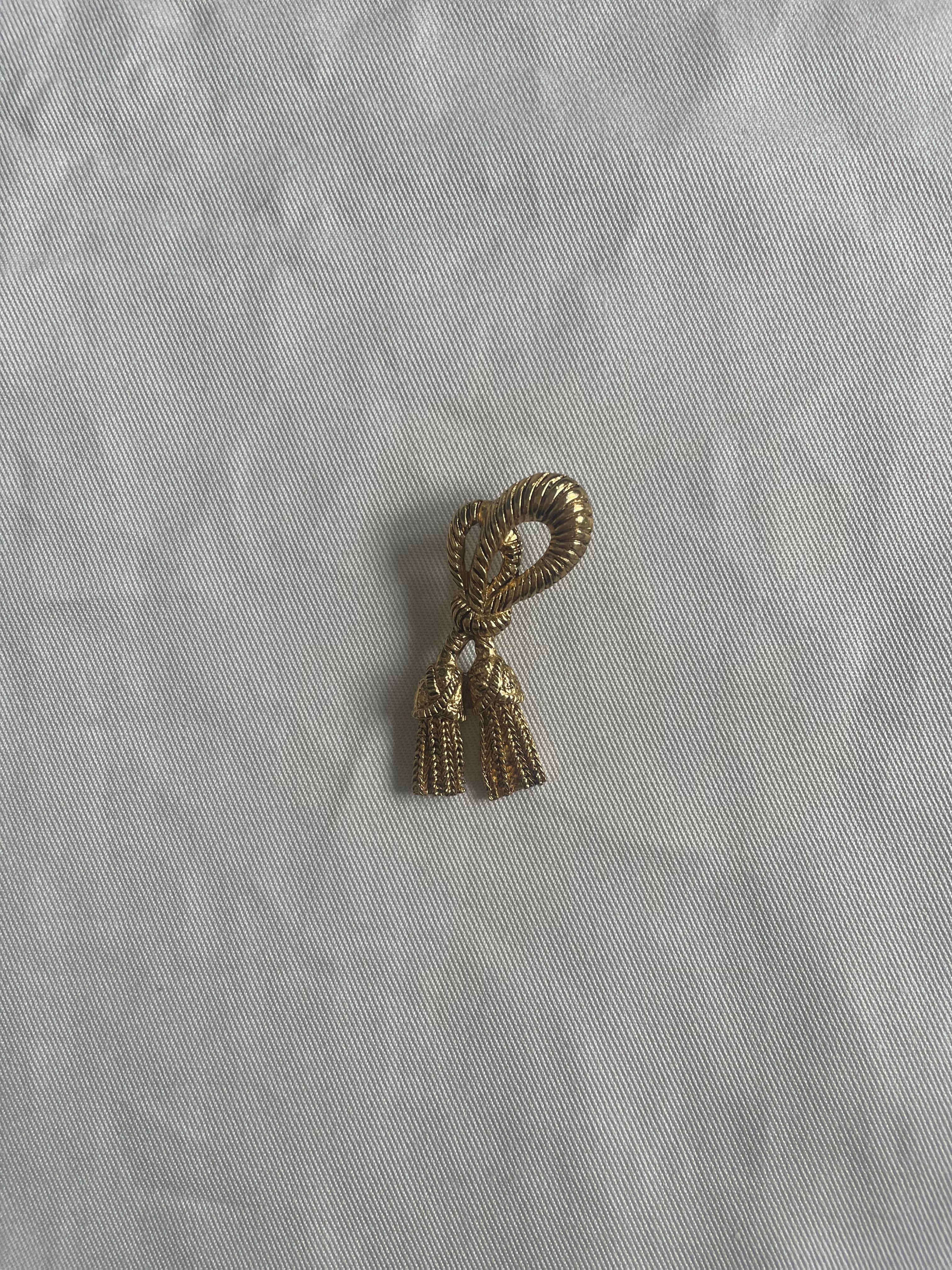 タッセルモチーフを立体的に表現したボタン。落ち着いたゴールドの輝きが特徴で装飾ボタンとして存在感のある42mmサイズの合金ボタンです。