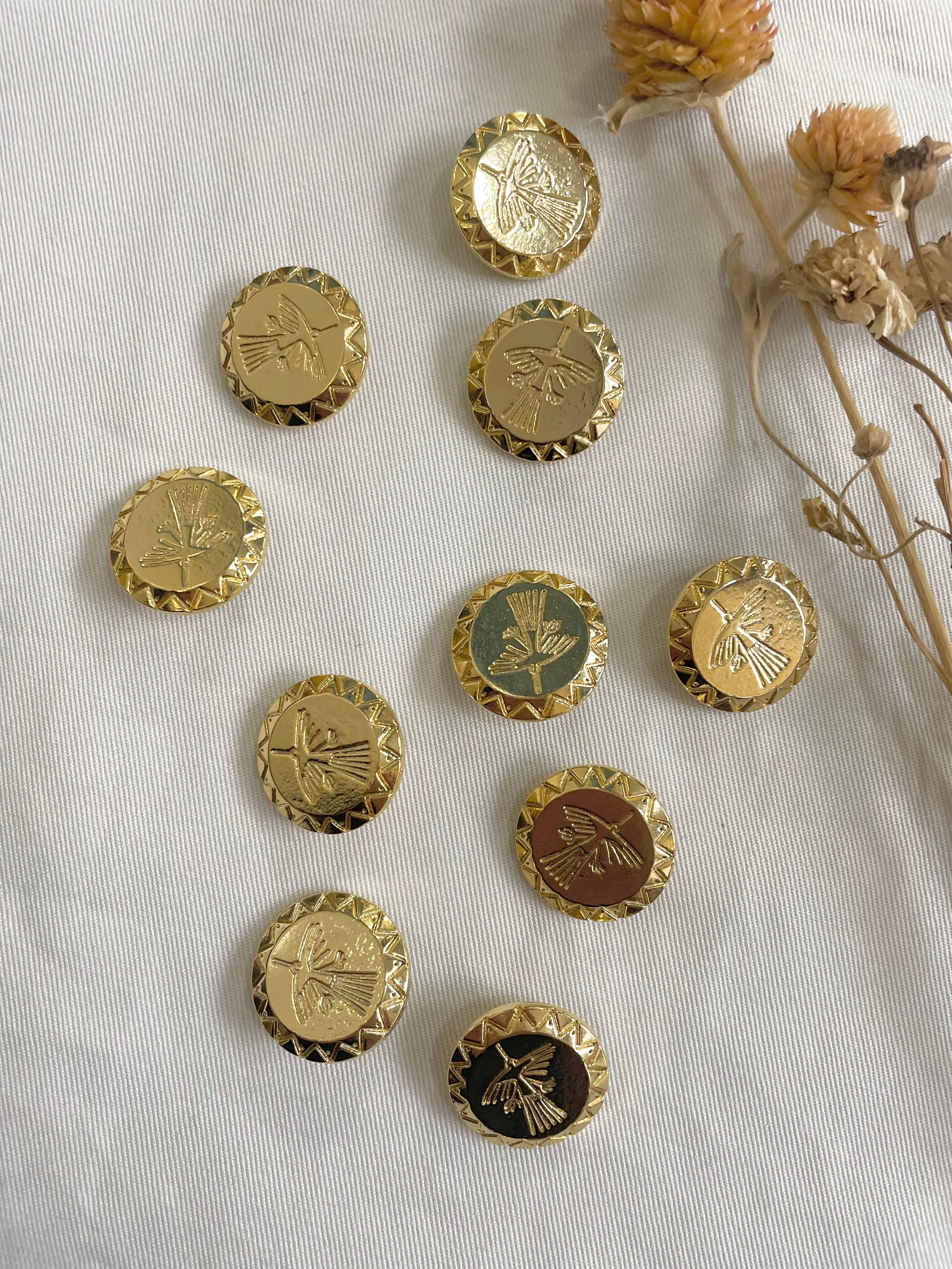 ナスカ文化をモチーフにしたコンドルボタン。約20mmの大きさで、存在感があります。上品なデザインで、洋服やバッグ、アクセサリーなど様々なアイテムに取り付けることができます。