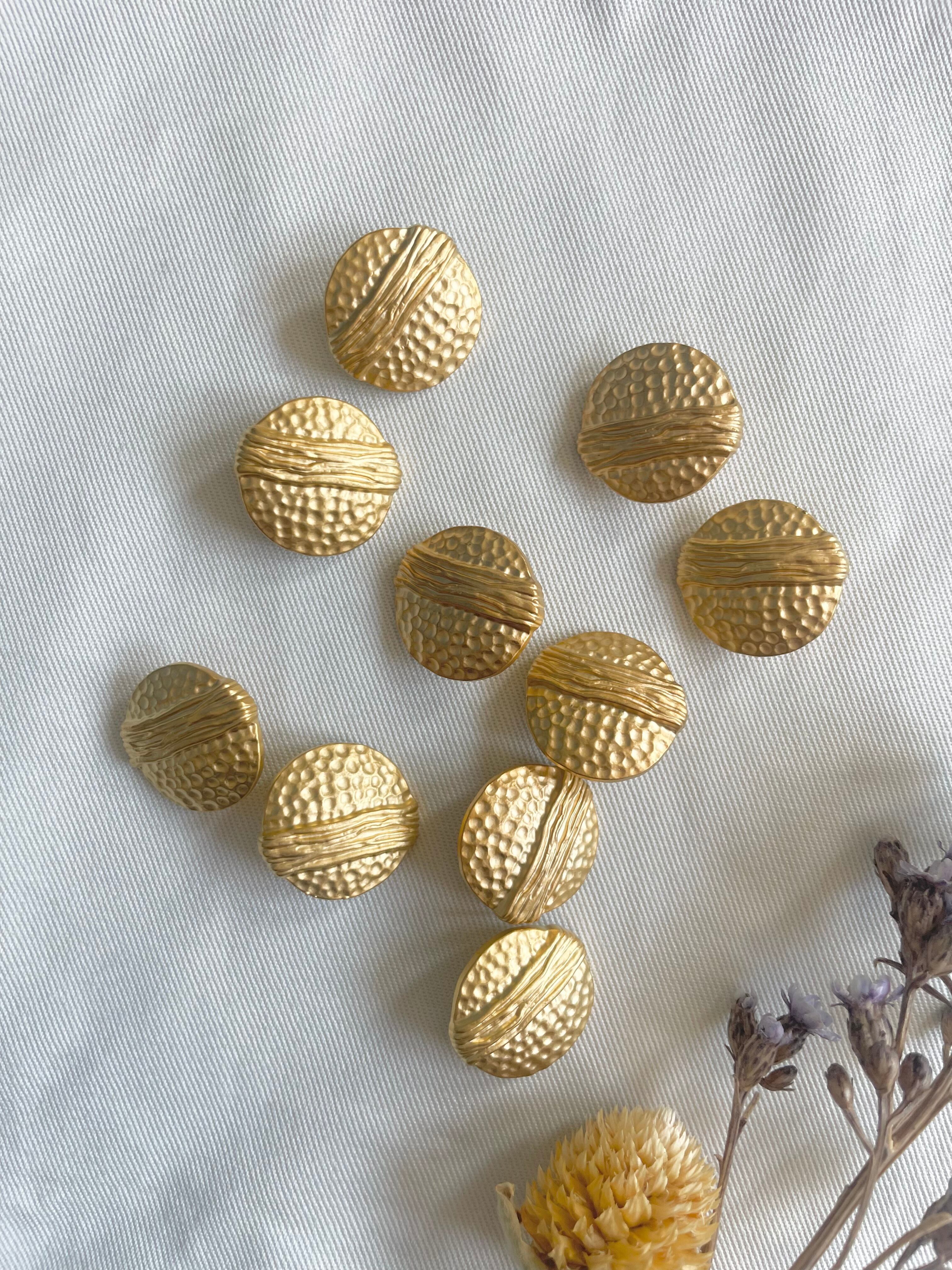 独創的なデザインが魅力のパブロボタン【約17mm】。マットゴールドの質感が上品さを演出し、お洋服やバッグ、アクセサリーなどに取り付けるだけで、一気におしゃれ度がアップします。手に取るたびに心躍る、そんな存在感を放つボタンです。